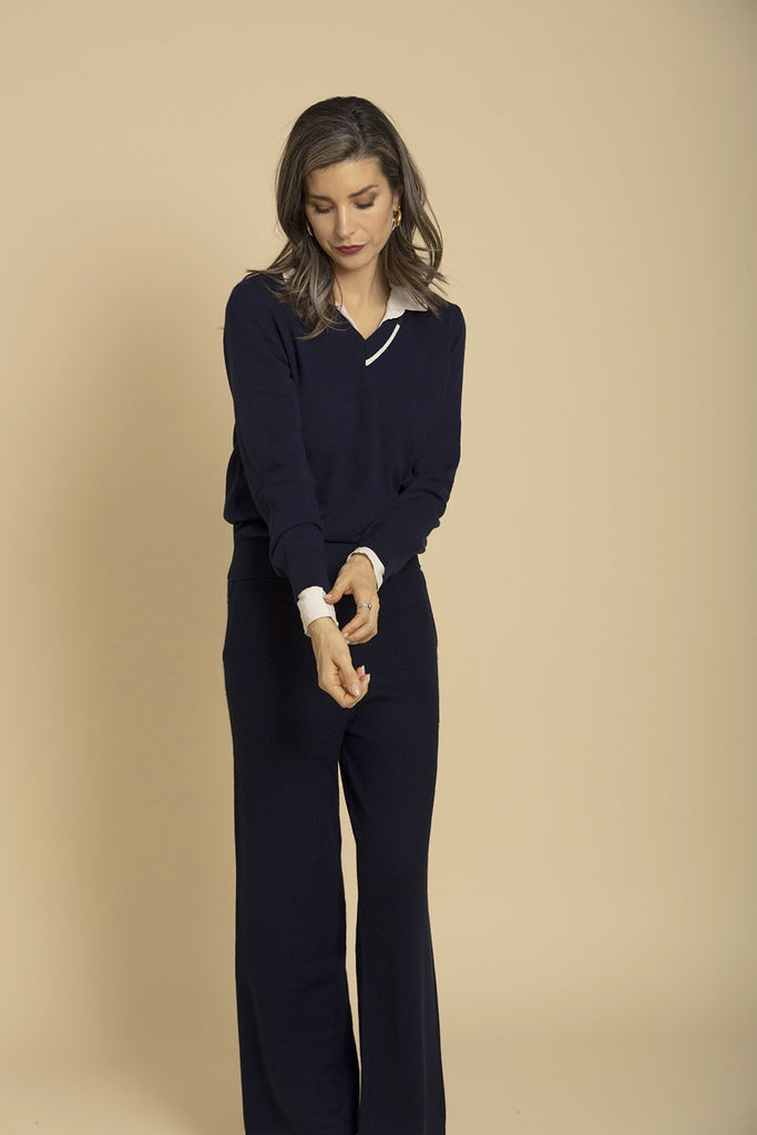 The Ascot Vee Neck is a modern interpretation of classic knitwear — crafted in 100% pure cashmere and defined by Adeela Salehjee’s signature quiet luxury. A discreet band of block stripes beneath the neckline trim introduces refined visual interest, elevating this wardrobe essential with understated charm.