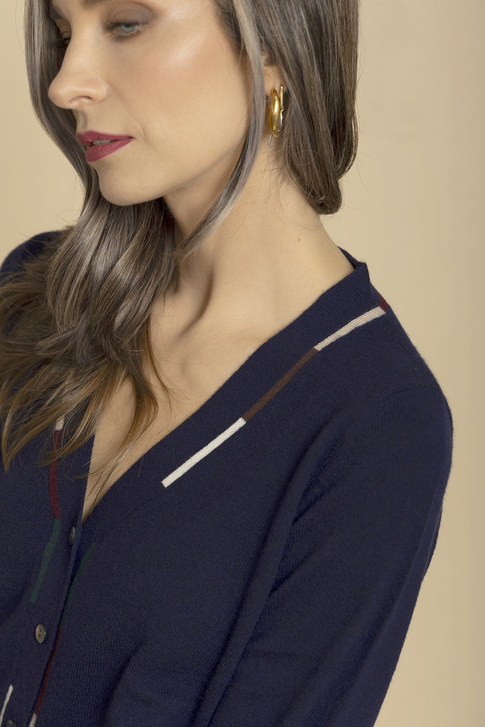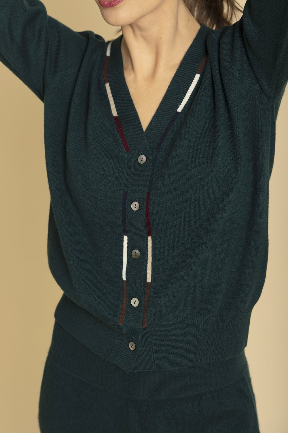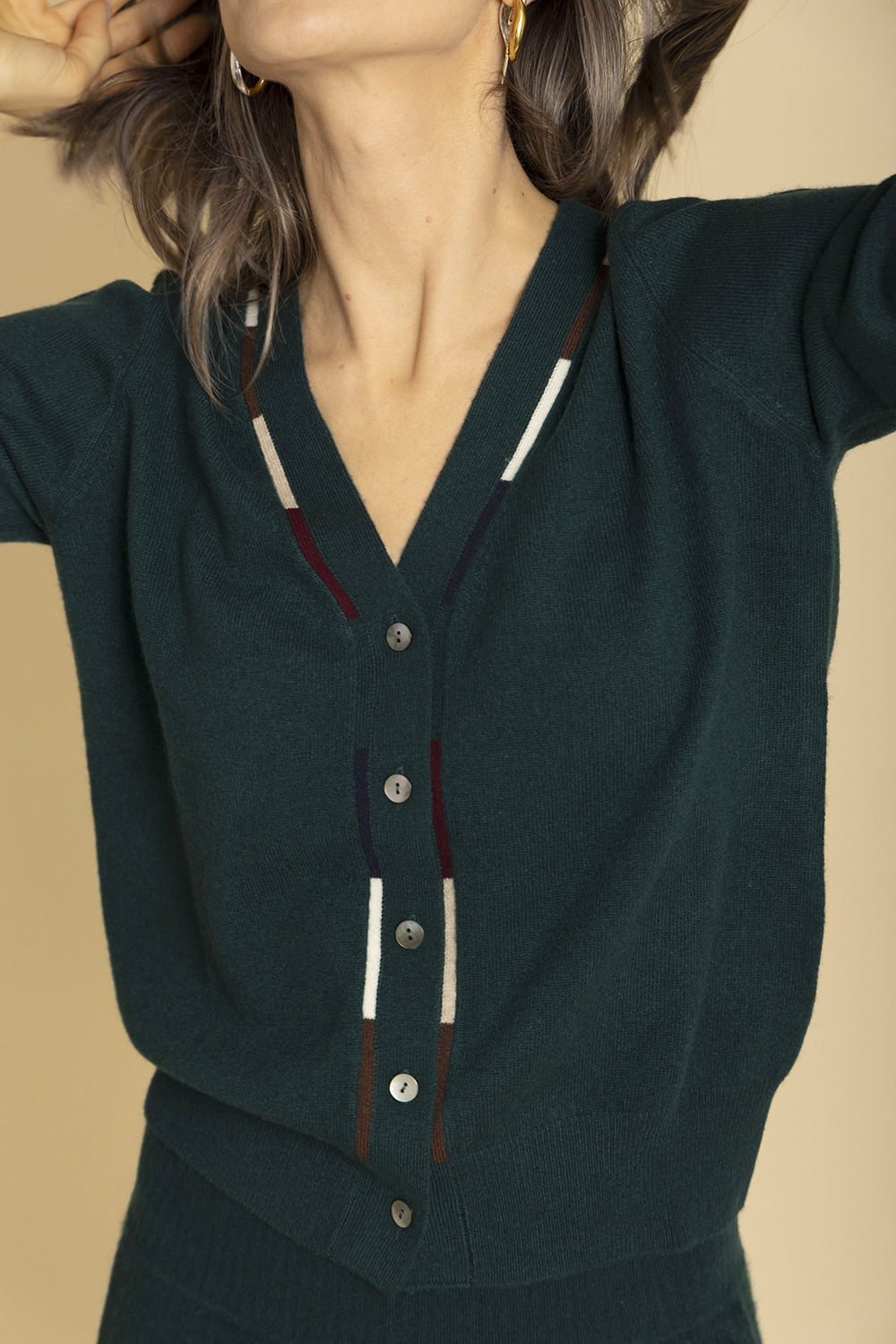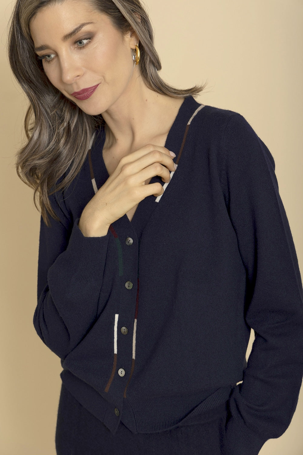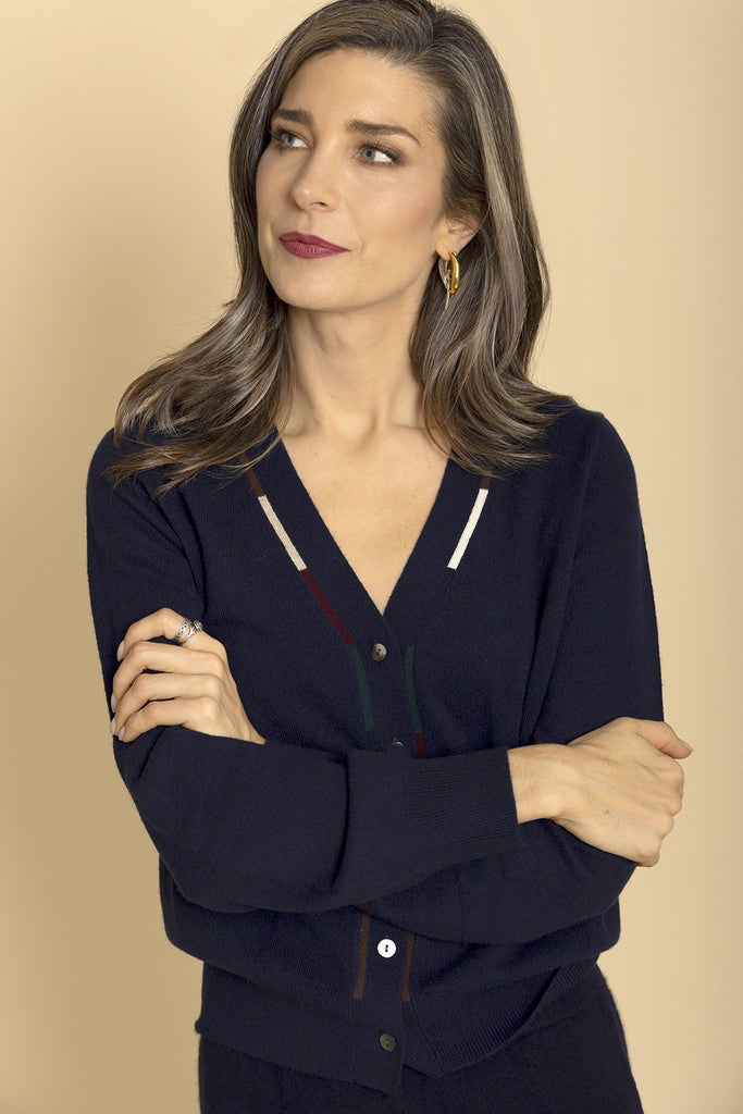 The Epsom Cardigan is an essential for the modern, quietly luxurious wardrobe. Knitted in 100% pure cashmere, it offers a soft, lightweight feel and a clean, classic silhouette. Subtle block stripe detailing along the placket adds visual interest and understated sophistication — a signature touch that elevates an everyday essential.