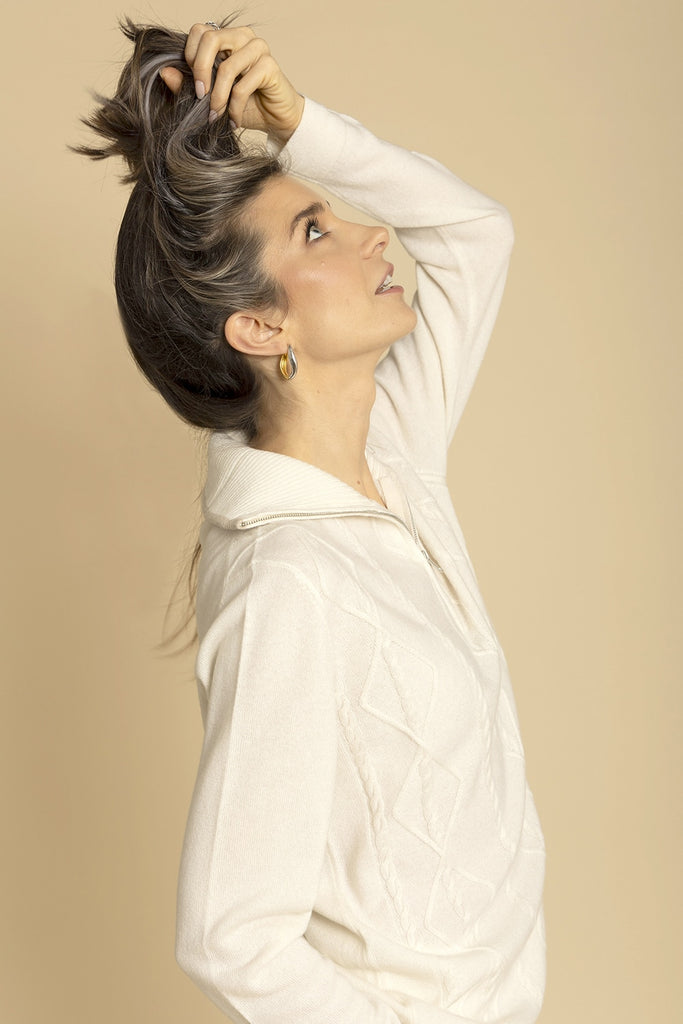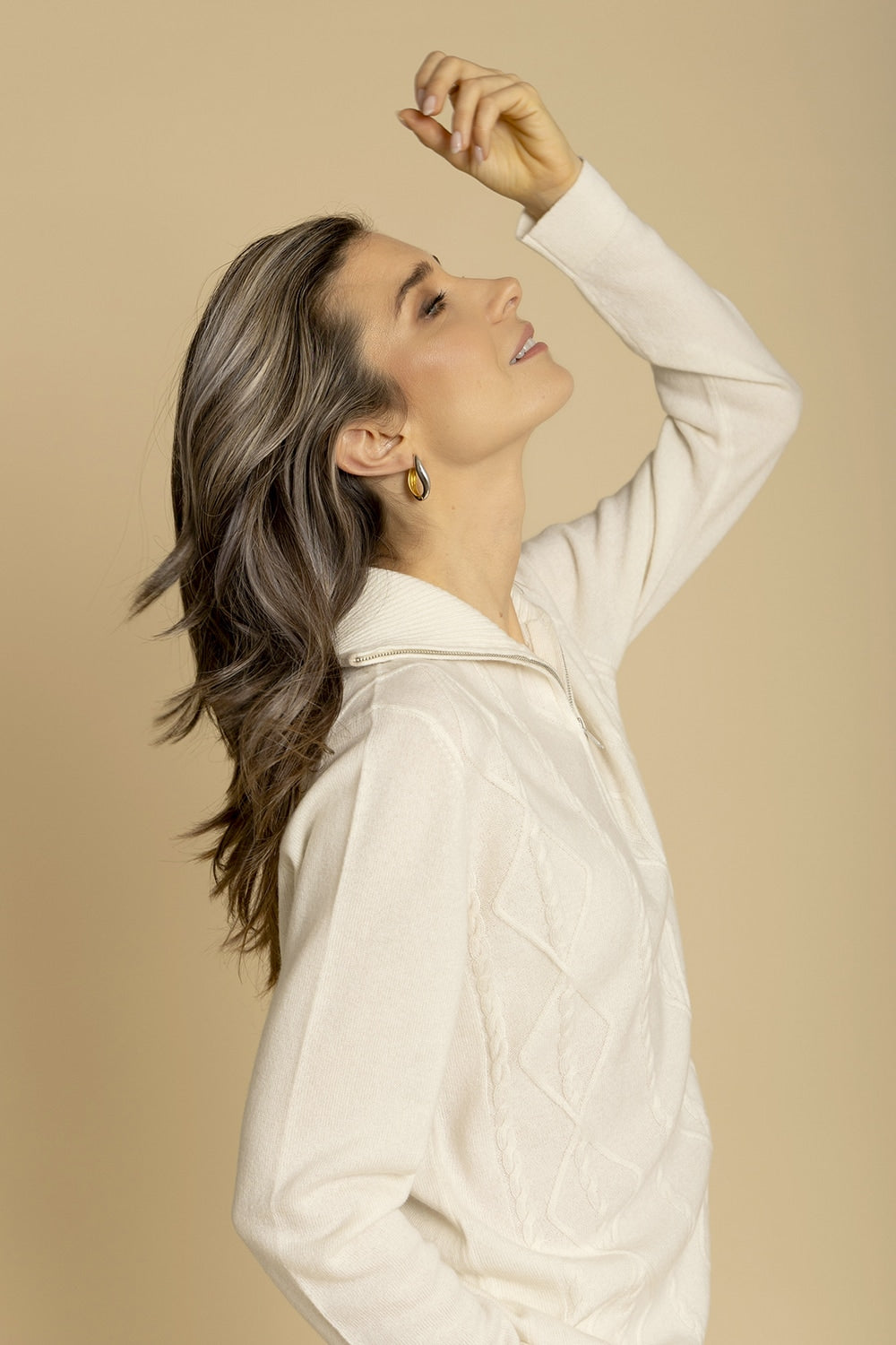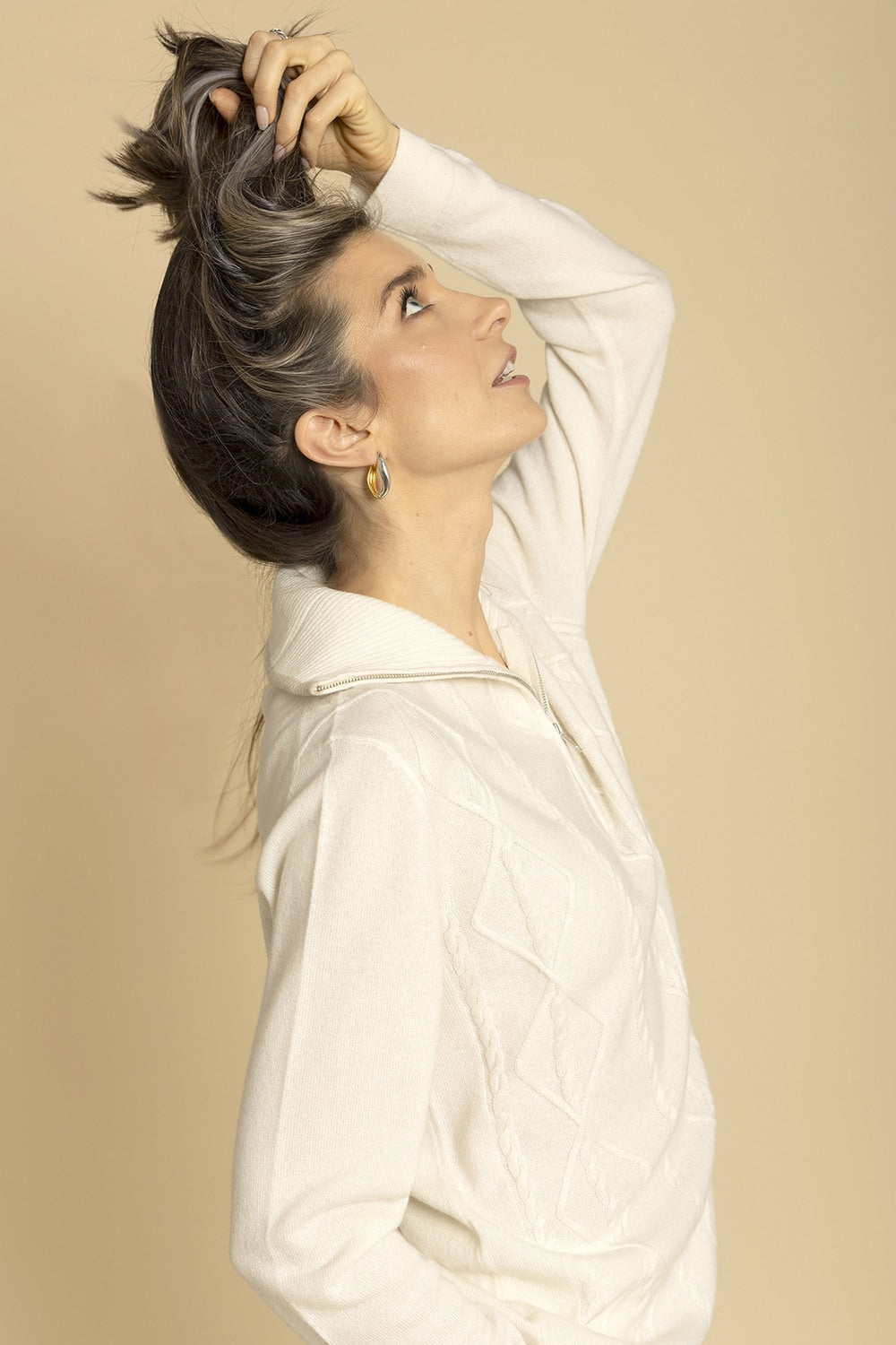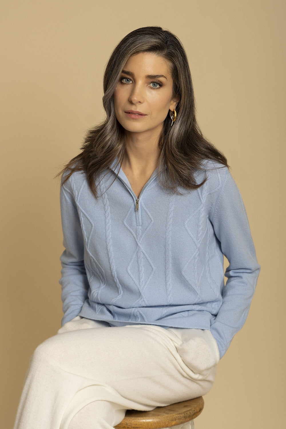The Hampshire Cable Half Zip embodies Adeela Salehjee’s devotion to craftsmanship and the art of quiet luxury. Knitted in 100% pure cashmere, it combines the richness of a classic cable stitch with a contemporary half-zip neckline and ribbed collar for effortless versatility.