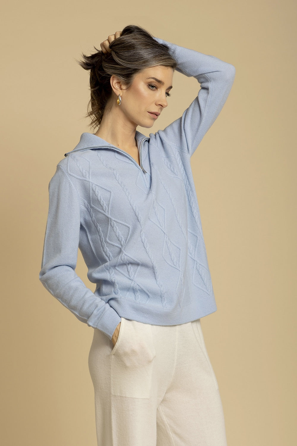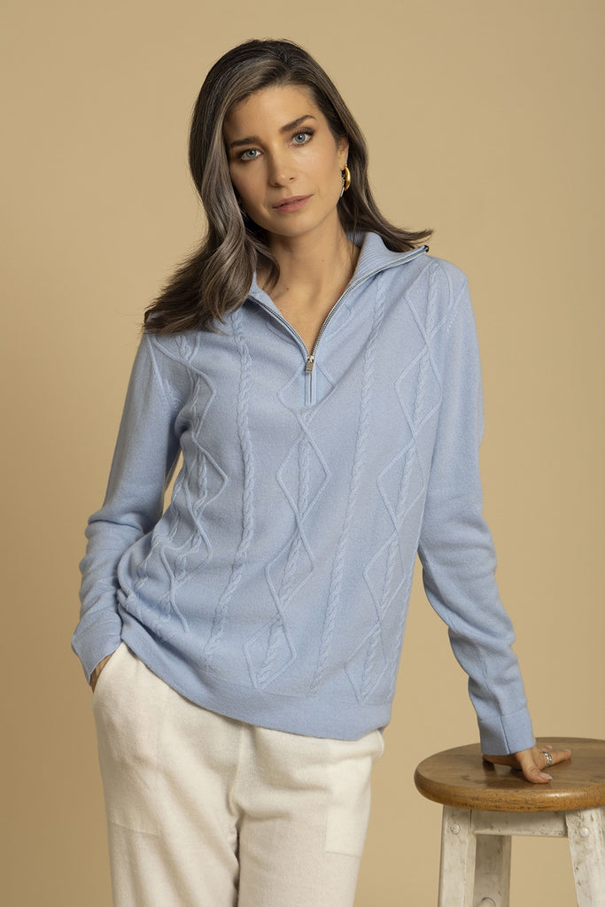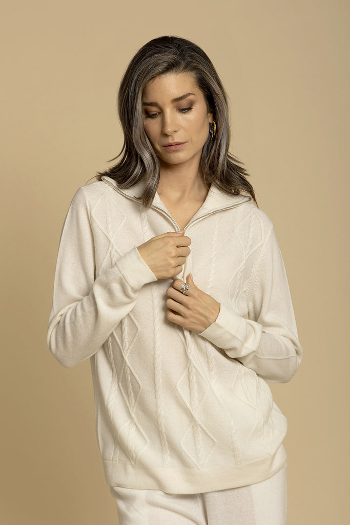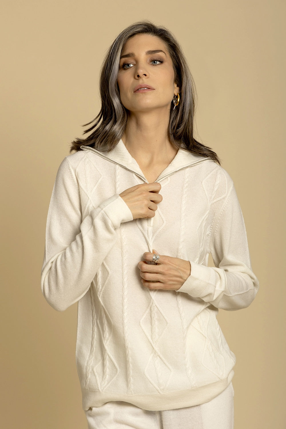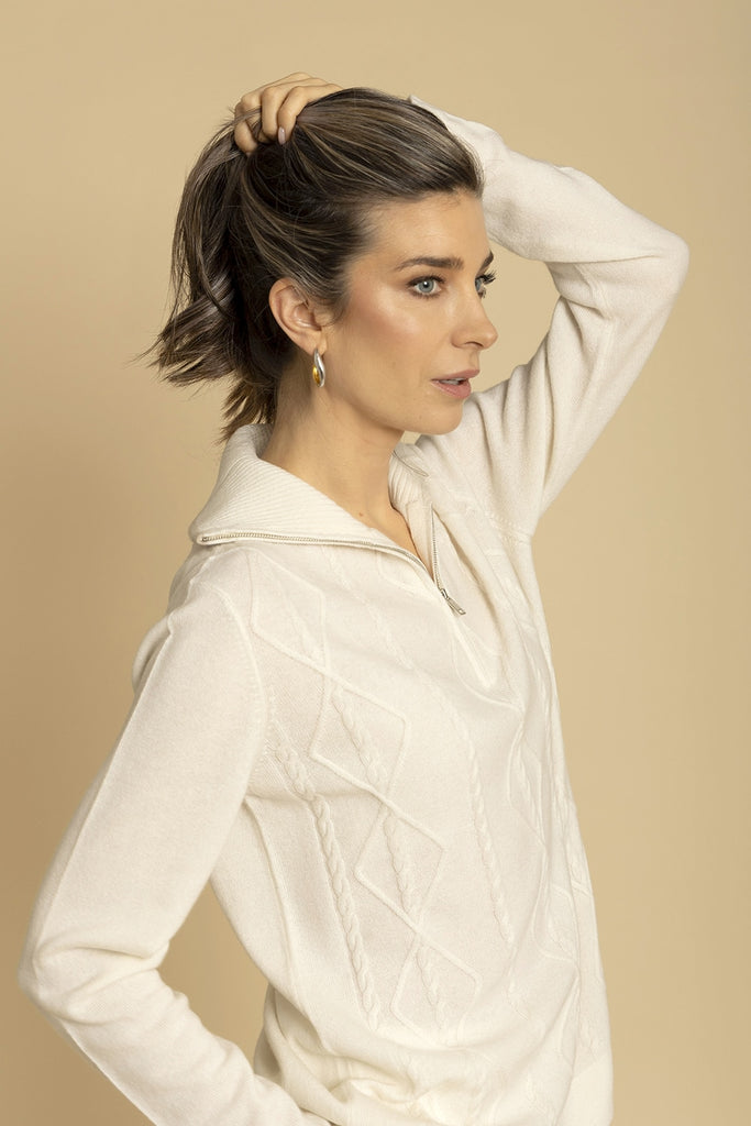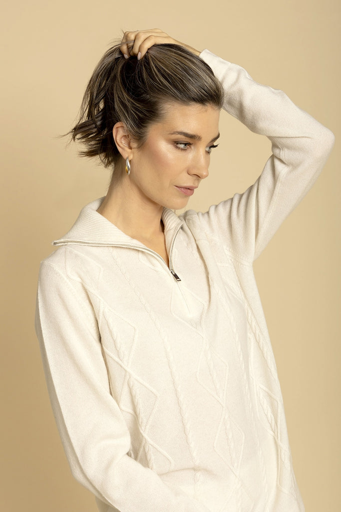 The Hampshire Cable Half Zip embodies Adeela Salehjee’s devotion to craftsmanship and the art of quiet luxury. Knitted in 100% pure cashmere, it combines the richness of a classic cable stitch with a contemporary half-zip neckline and ribbed collar for effortless versatility.