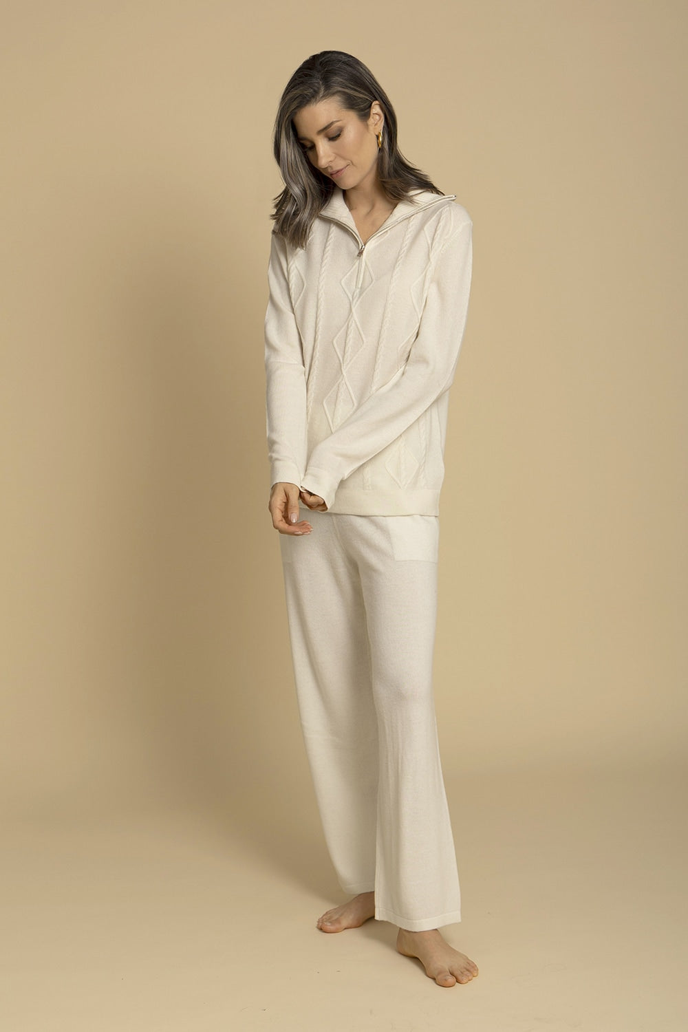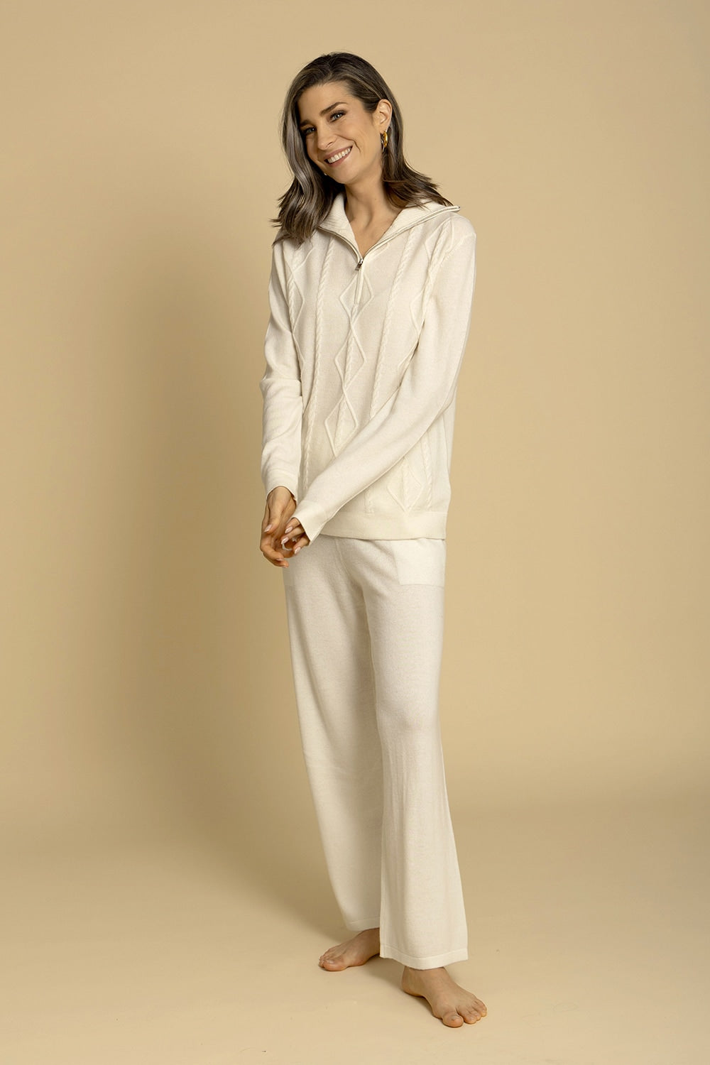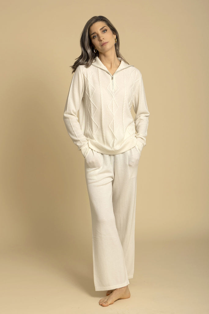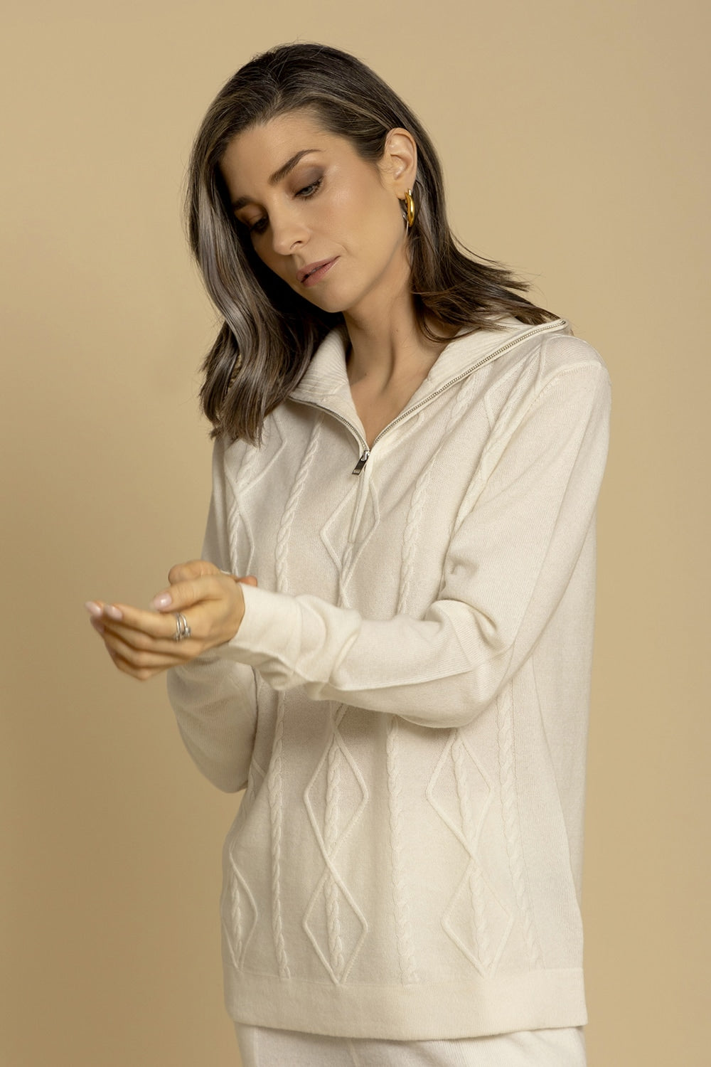 The Hampshire Cable Half Zip embodies Adeela Salehjee’s devotion to craftsmanship and the art of quiet luxury. Knitted in 100% pure cashmere, it combines the richness of a classic cable stitch with a contemporary half-zip neckline and ribbed collar for effortless versatility.