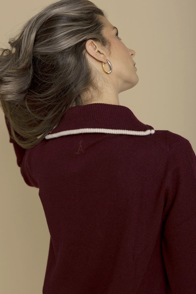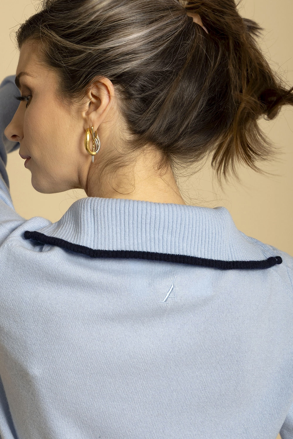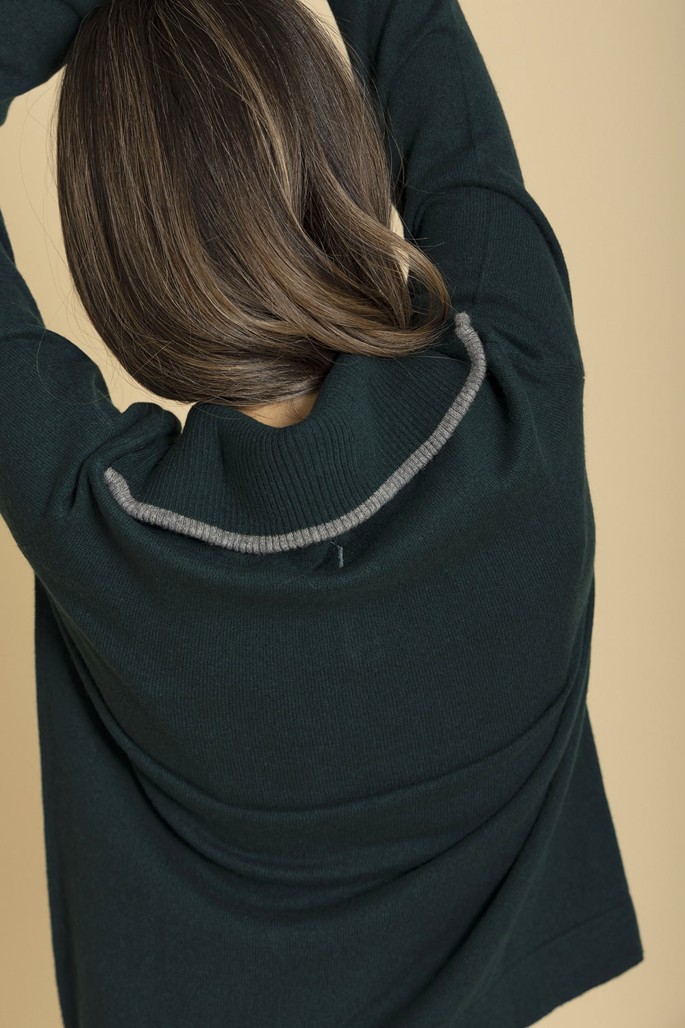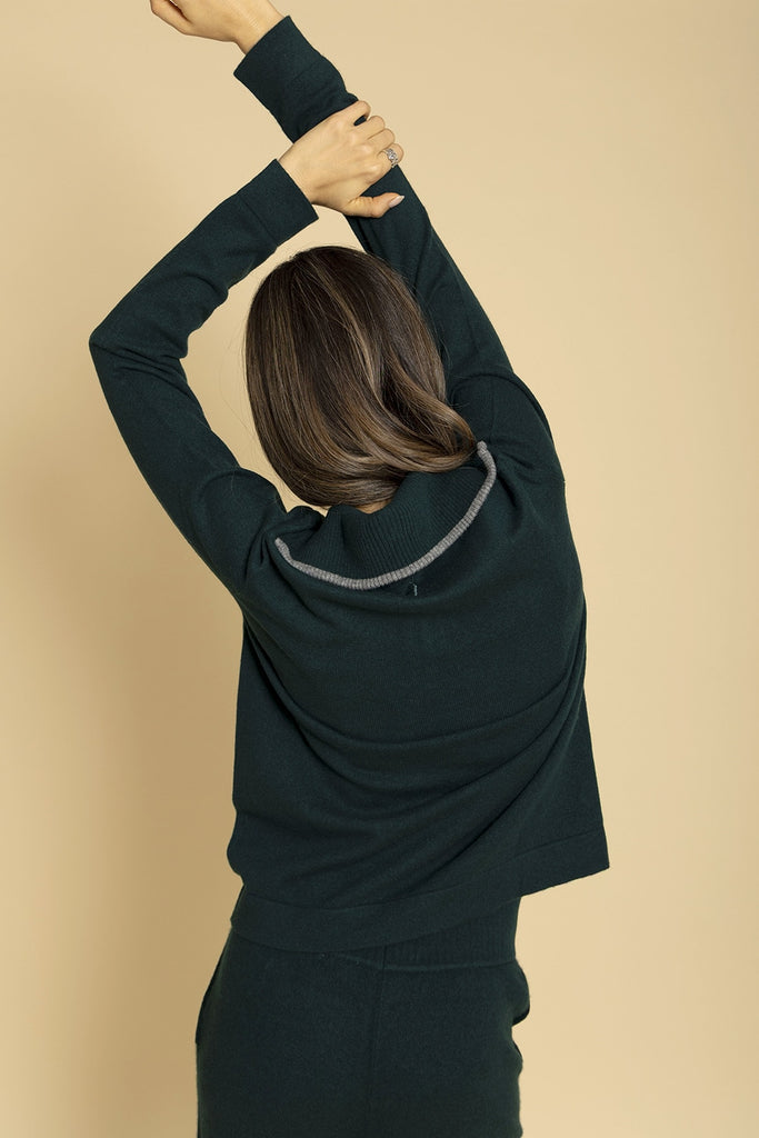 Thoughtfully detailed with contrast colour edges at the collar, hem, and cuffs, this piece offers a refined take on traditional knitwear — elegant yet easy to wear. The soft drape and impeccable finish make it a year-round staple for both casual layering and polished dressing.