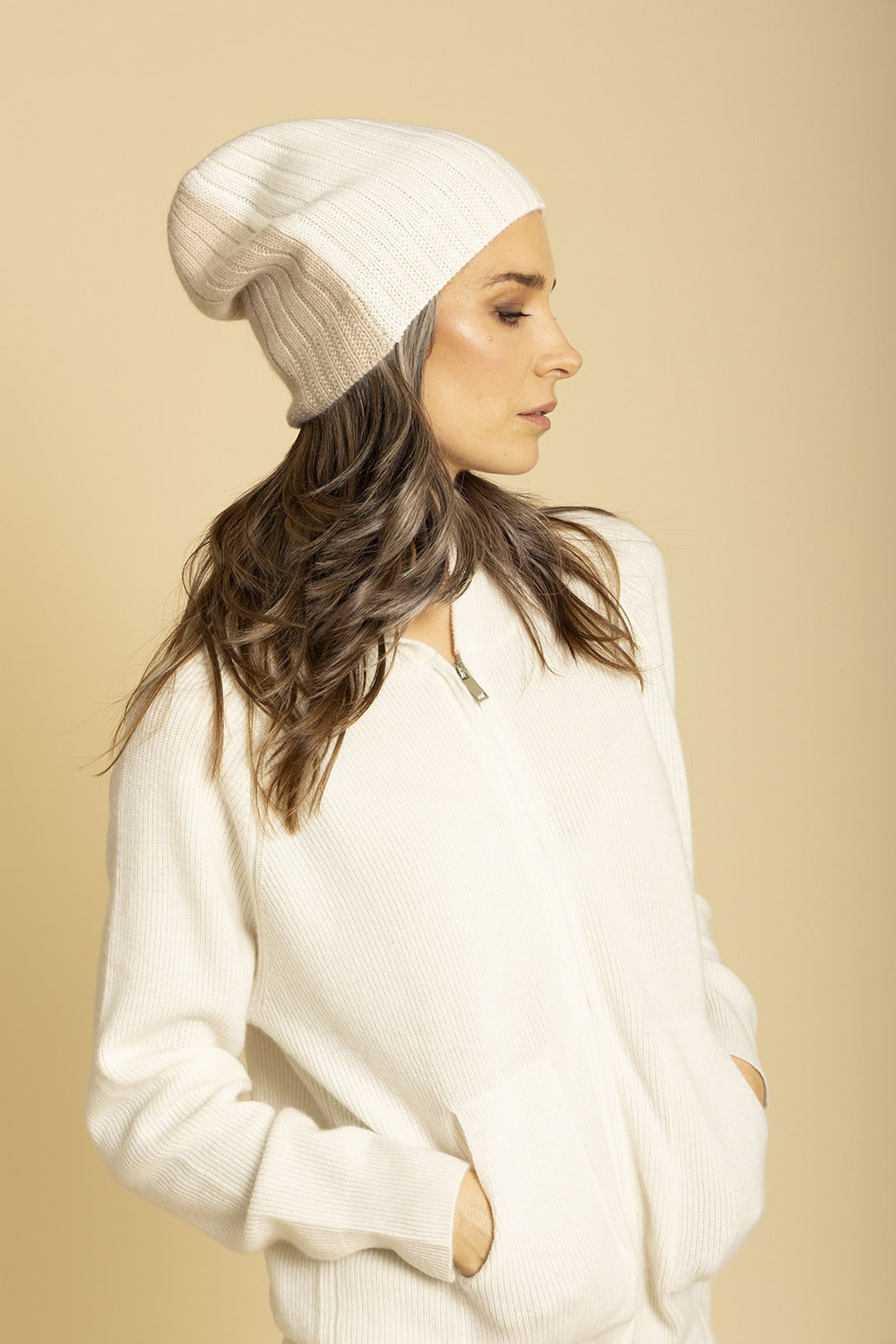 The Henley Beanie brings effortless elegance to your winter wardrobe. Knitted in 100% pure cashmere using a relaxed rib stitch, it offers exceptional softness and a naturally comfortable fit.