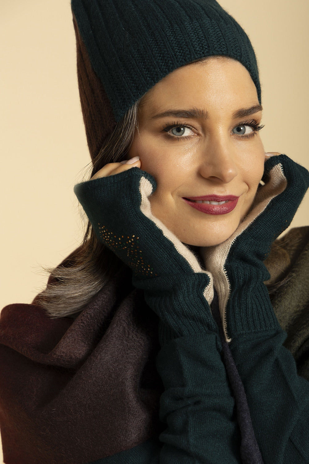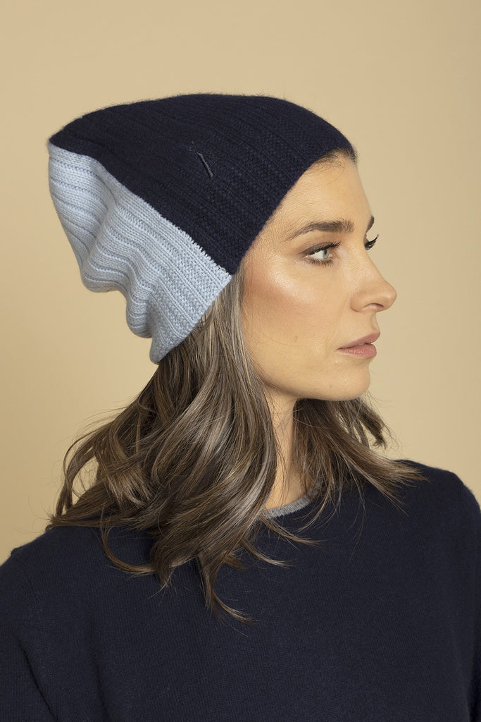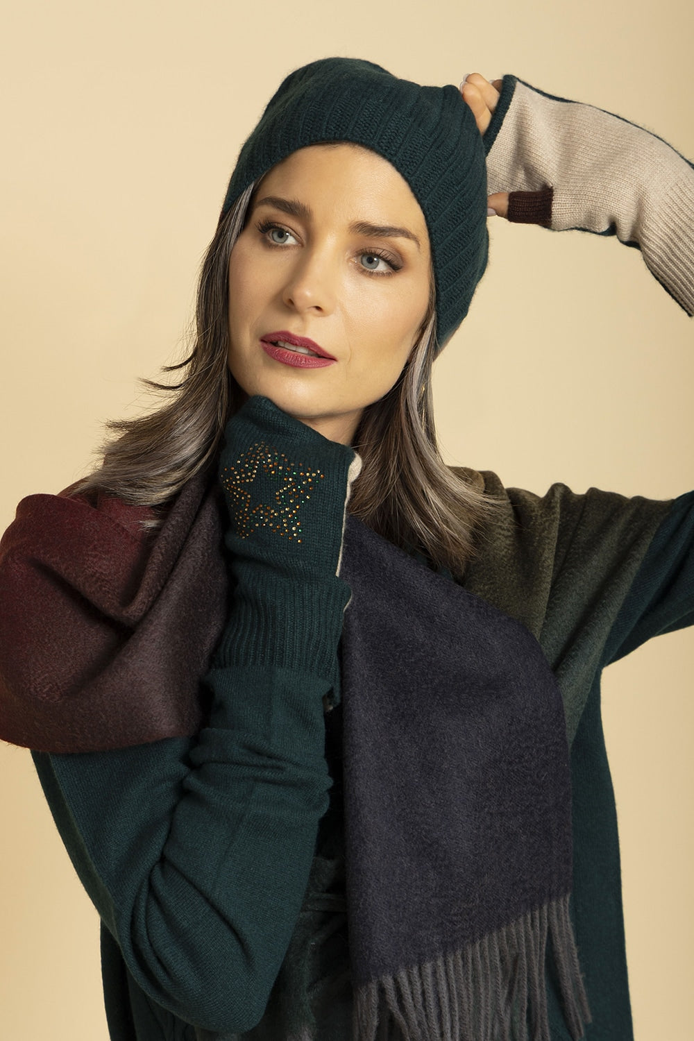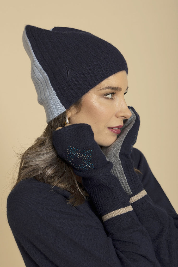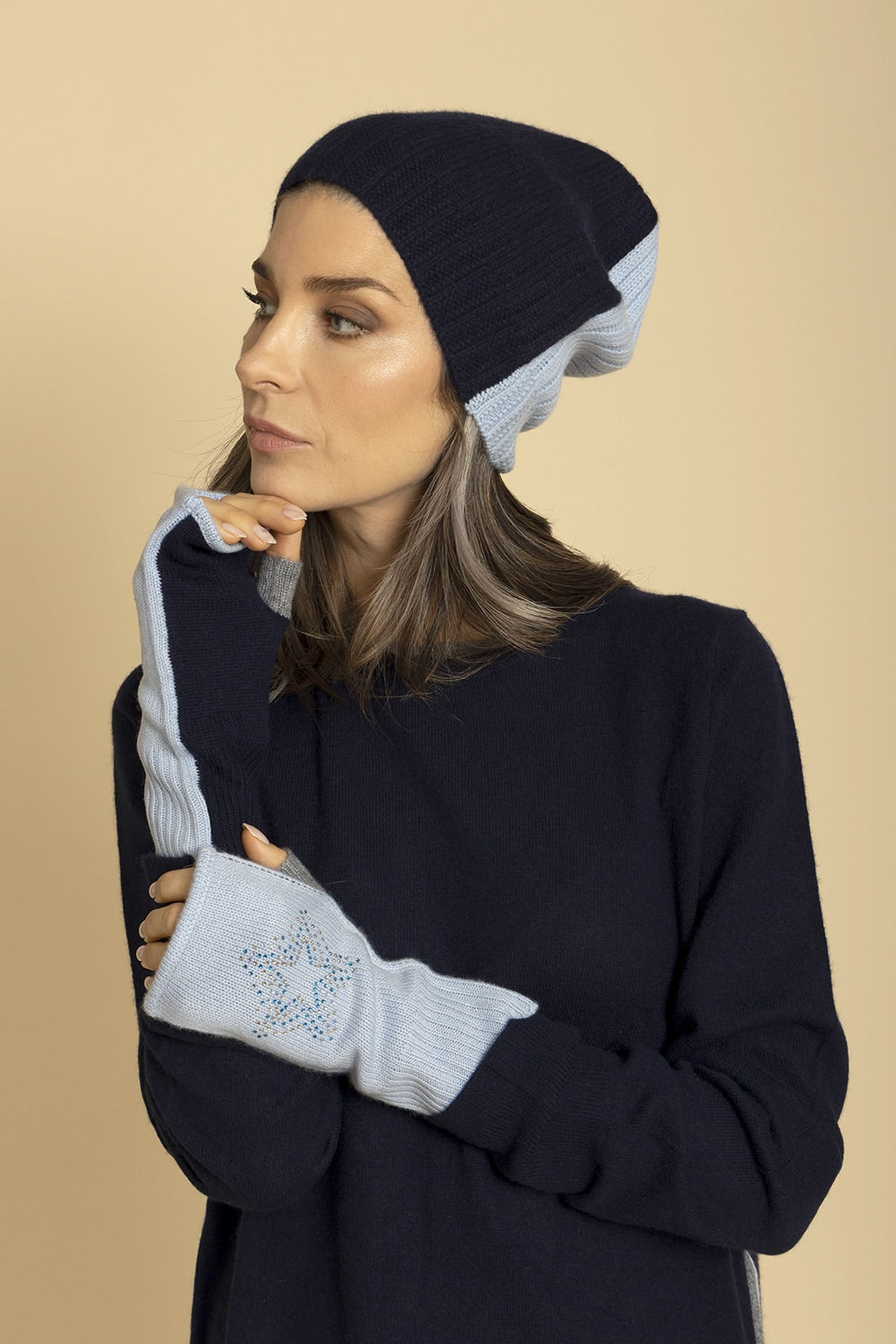 A double-sided contrast colour detail adds understated interest, making it a versatile accessory for year-round layering. For a coordinated, elevated look, pair the Henley Beanie with the Thames Fingerless Gloves — perfect for styling your AW25 cashmere collection with ease and sophistication.