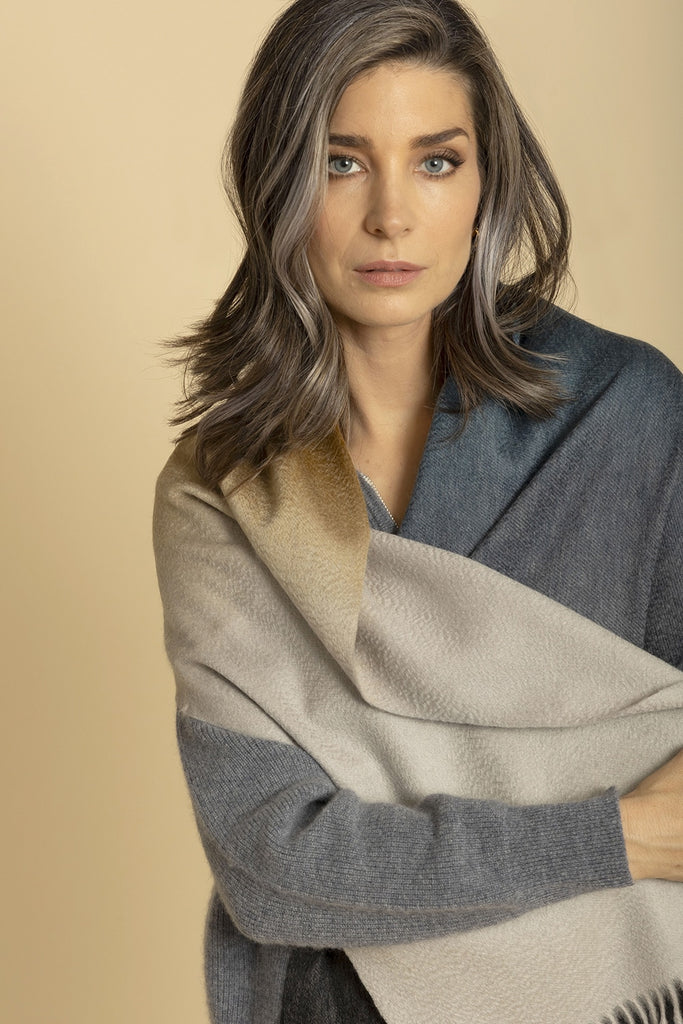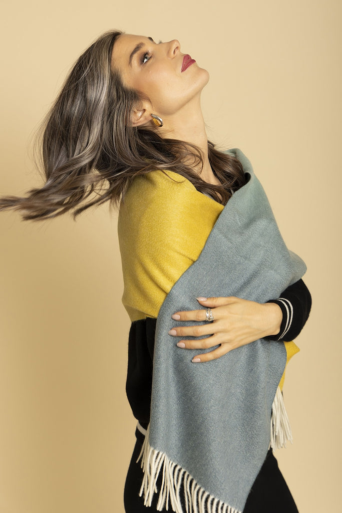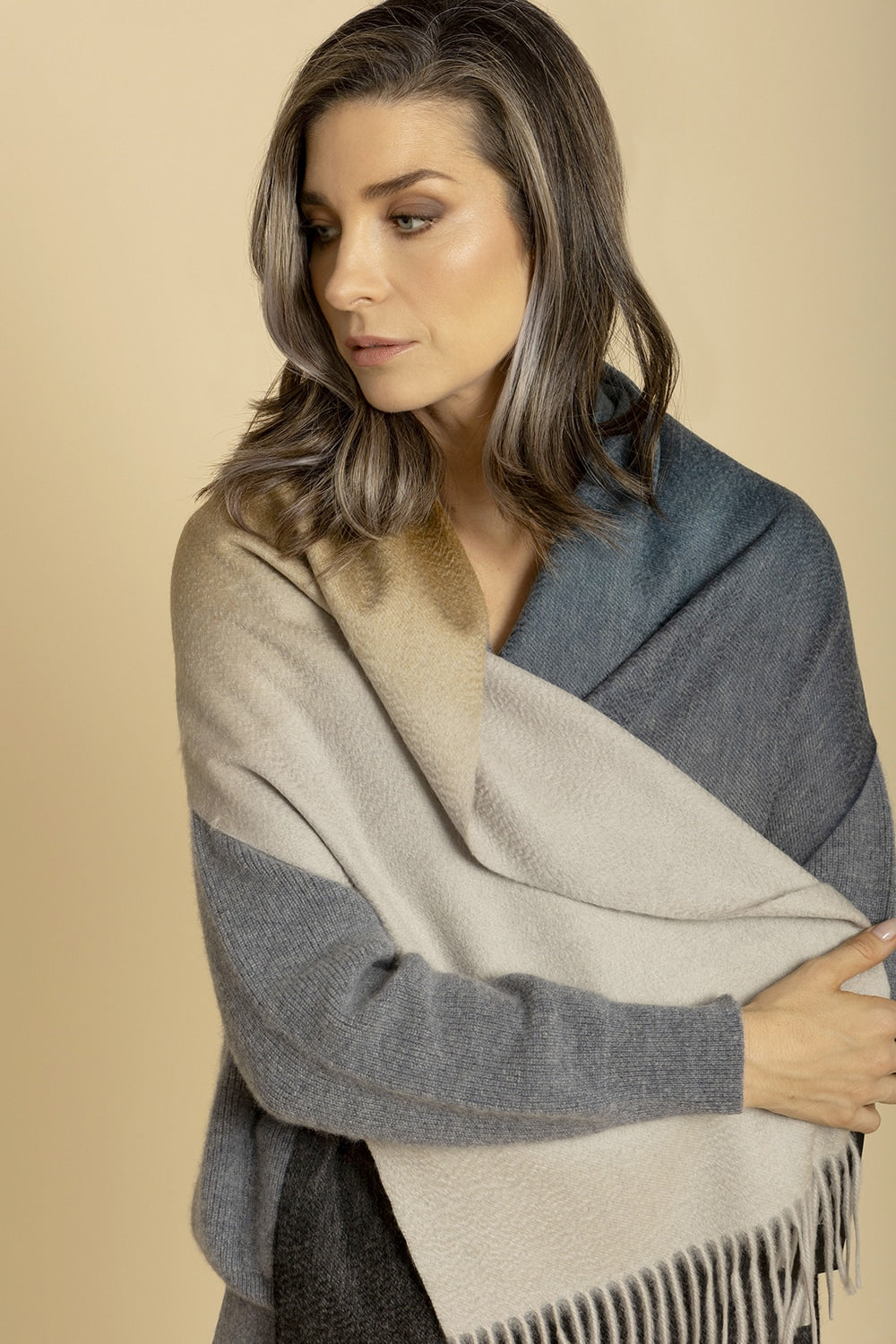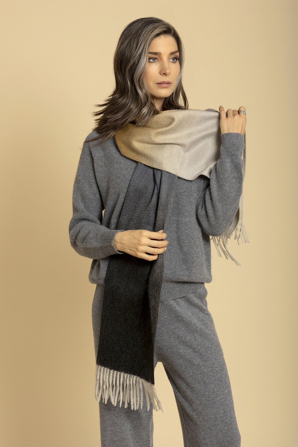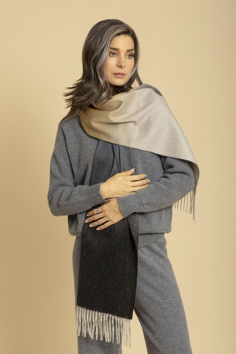 Super soft, double-sided woven cashmere scarf made of 100% cashmere.