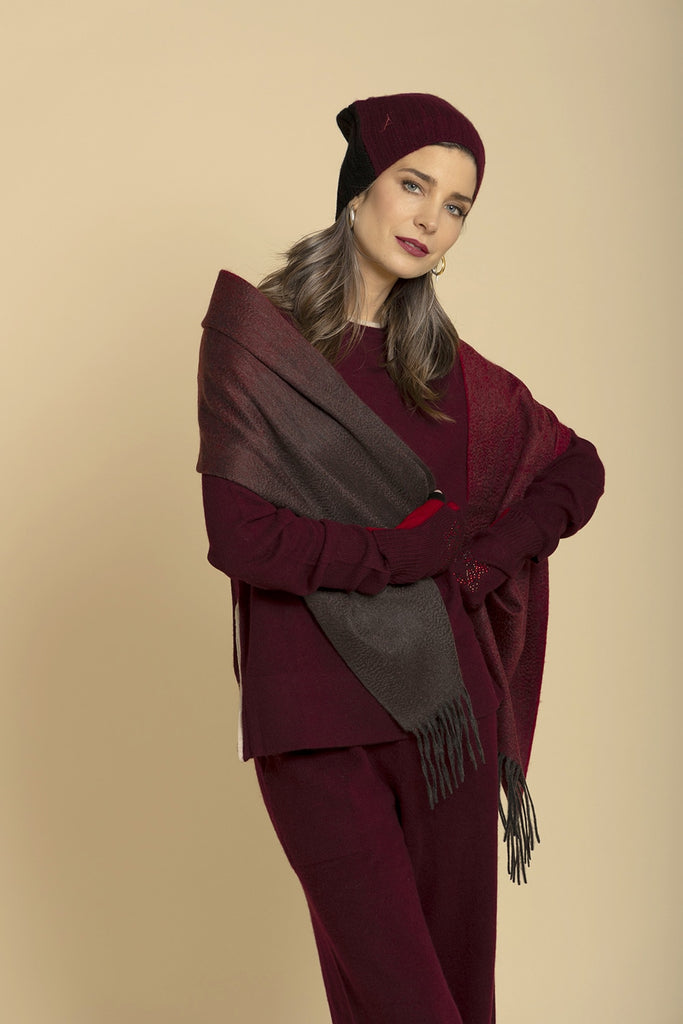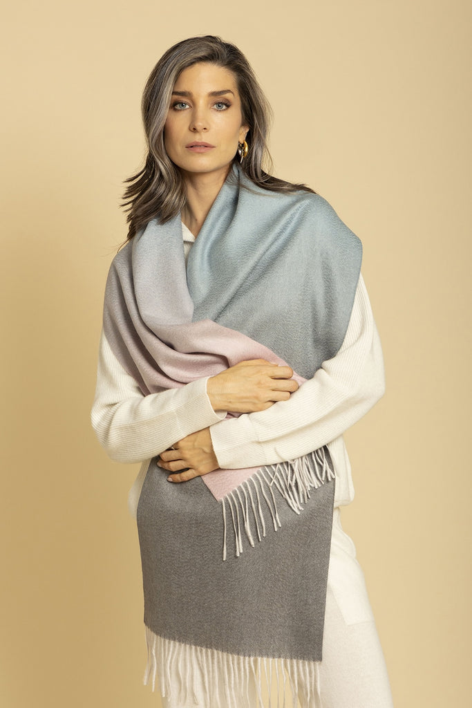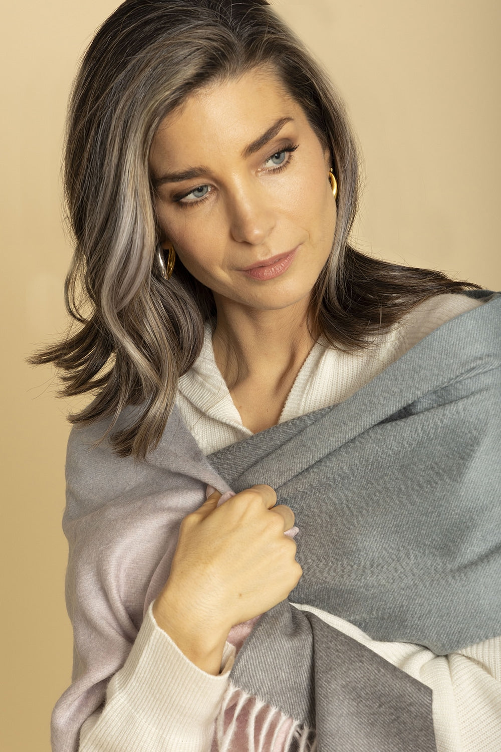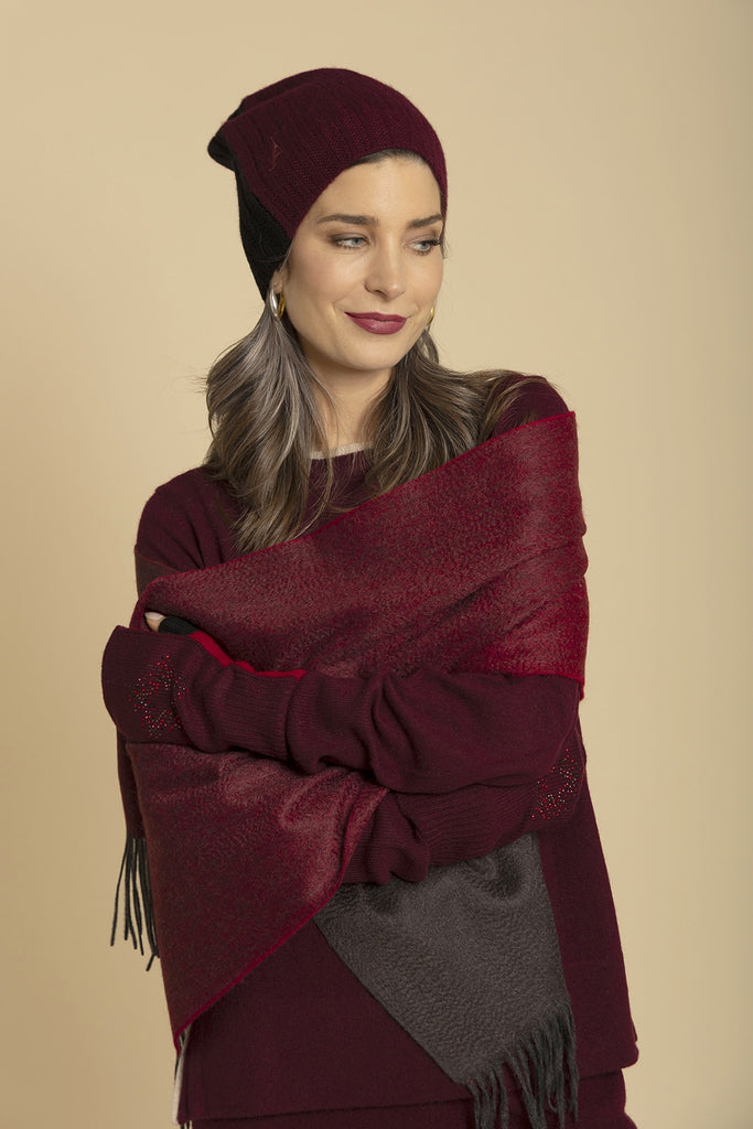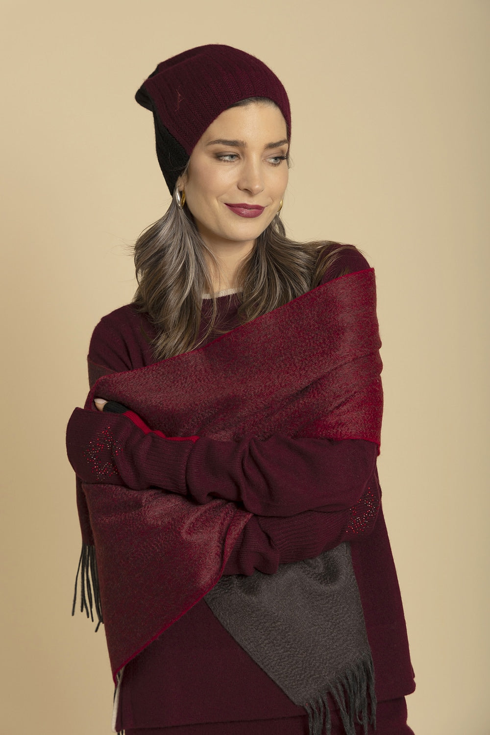 Super soft, double-sided woven cashmere scarf made of 100% cashmere.